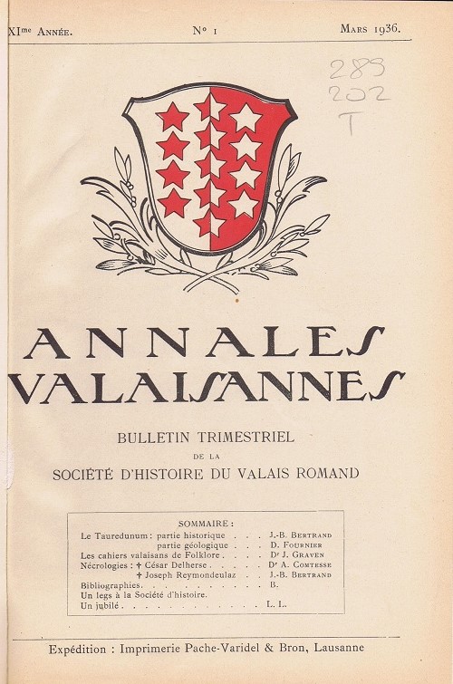 Annales valaisannes, 1933 numéros 1 à 4 Publié en 1933, SHVR